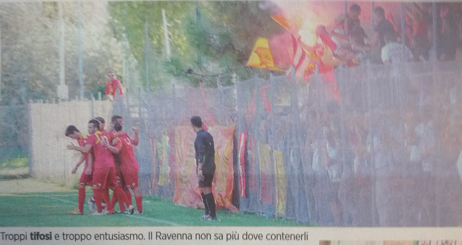 Ahinoi prosegue il nomadismo per le partite in casa del nostro Ravenna. Questa domenica saremo sul campo di Russi sperando sia una sistemazione definitiva perchè la situazione francamente comincia davvero a scocciare e non poco. Per agevolare l'afflusso di tifosi e soprattutto di Ultras ci organizzeremo come per una trasferta; pertanto, chi ha bisogno di un passaggio, potrà contare su di noi anche questa volta. Il ritrovo è per le ore 14 dietro la Curva Mero. Per chi invece verrà direttamente con mezzi propri, potrete trovarci nella tribuna coperta ovviamente allo stadio di Russi. Se nell'ultima "in casa" ad Alfonsine vi volevamo colorati, numerosi e ignoranti (e così è stato), questa volta vogliamo letteralmente una bolgia. Più siamo, più ci divertiamo, prima capiranno che casa nostra è il Benelli. Sulla stampa dicono che non sanno più come contenerci ma ancora non abbiamo mostrato il meglio perciò facciamoli "preoccupare": animo Ravenna!